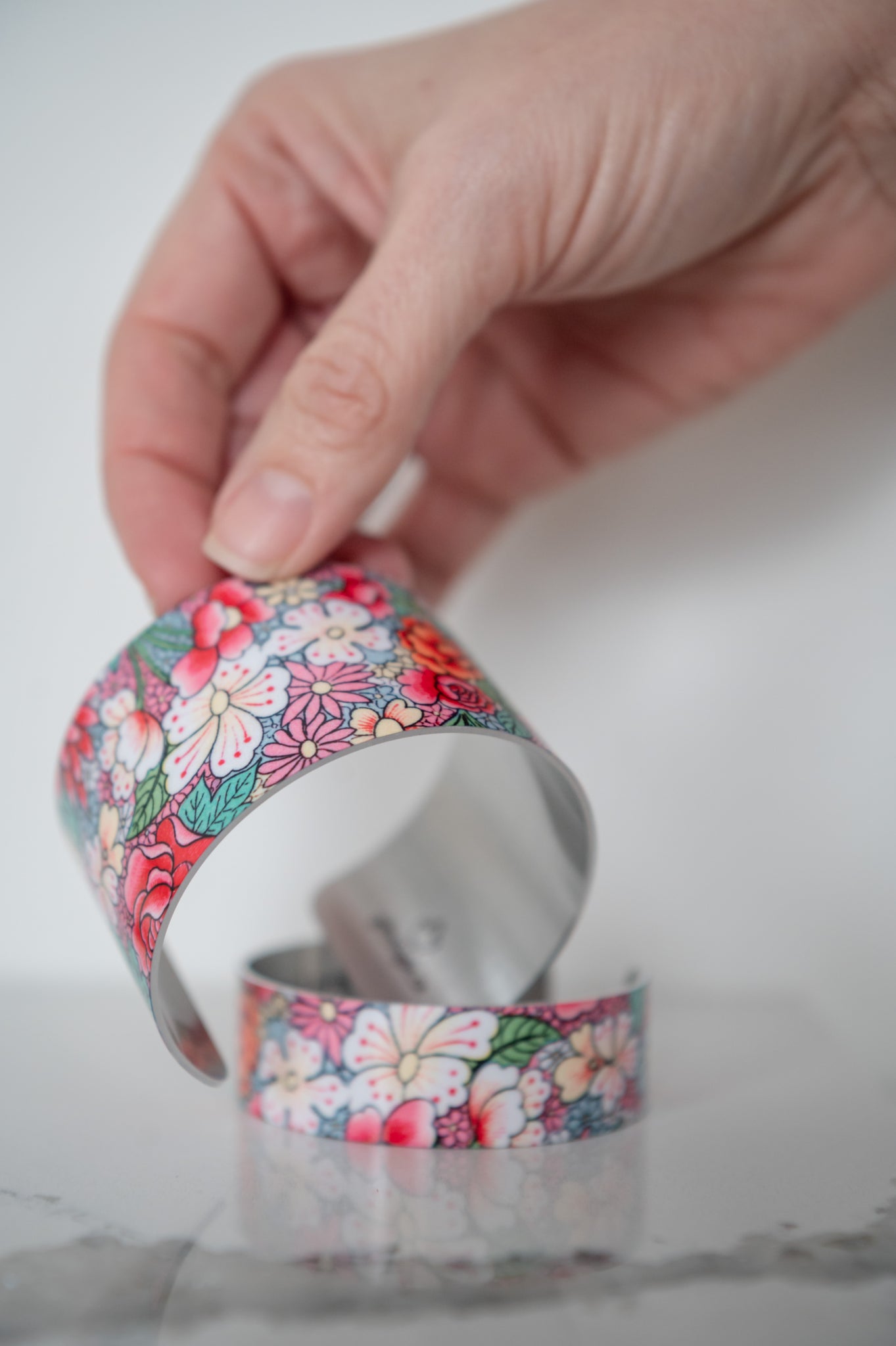 Add your favorite photo to the inside of the cuff by uploading an image. Please note that images will be printed at approximately 1.25" high. We use a permanent dye process to ensure vibrant, long-lasting color and a resilient finish.